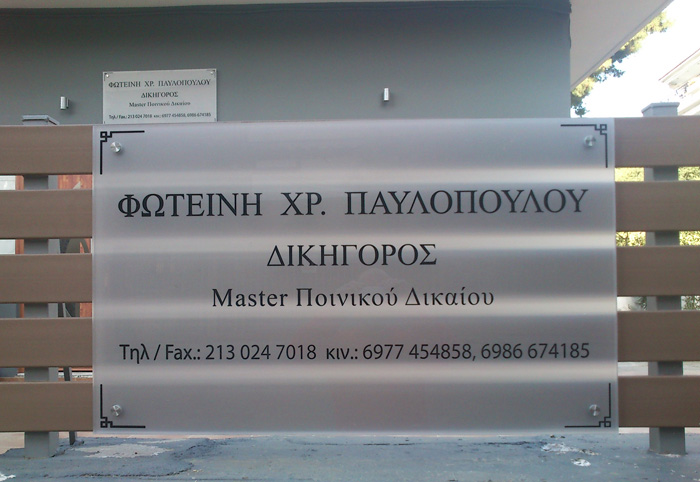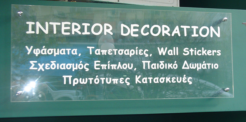 Καλαισθητές επιγραφές μπορούν να γίνουν με συνδυασμό υλικών όπως Plexiglass με μπρούντζο. Μπορούμε να υλοποιήσουμε πλήθος συνδυασμών και να κατασκευάσουμε τις δικές σας προτάσεις.
